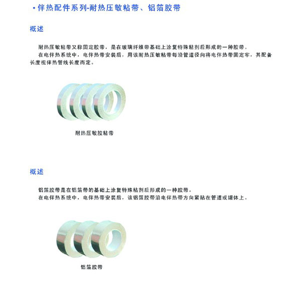 - 產(chǎn)品名稱:伴熱配件系列—耐熱壓敏粘帶、鋁箔膠帶